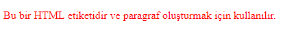 <p>Bu bir HTML etiketidir ve paragraf oluşturmak için kullanılır.</p>