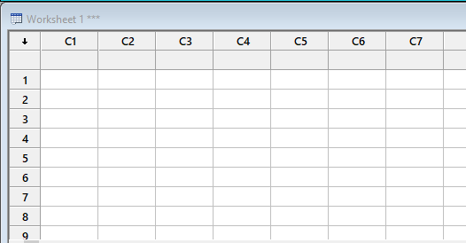 Minitab’da veri girişleri yanda görünen “Worksheet” yani çalışma sayfası, el ile manuel olarak yapılmaktadır. Burada kolonlara isim verip altındaki satırları veriler ile doldurabiliriz. Bunun yanı sıra komutlar kullanarak da veri girişlerini yapabiliriz.