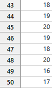 | 10 | 15 | 20 | 20 | 30 | 16 | 40 | 19 | 50 | 17 |